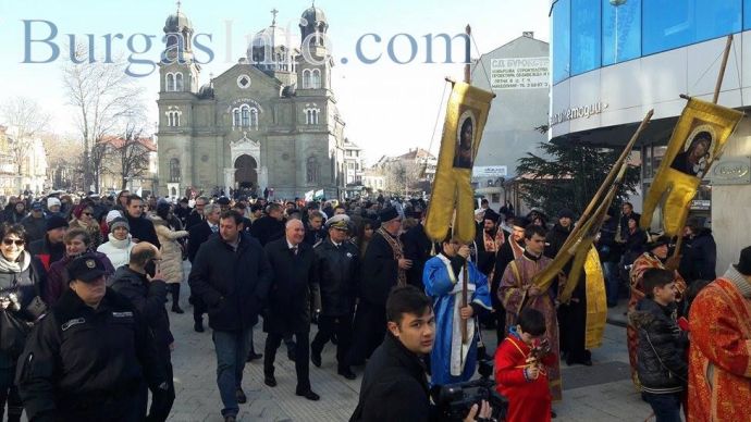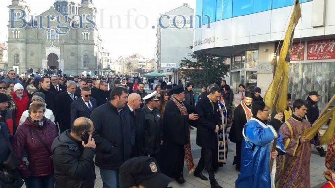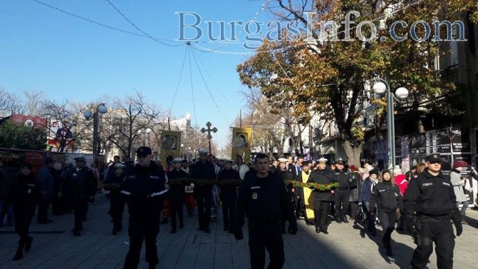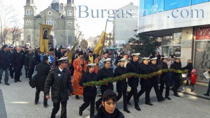 Процесията е предвождана от представители на Военноморските сили, които днес също имат празник и духовни лица, които пренасят свещените хоругви. В шествието участват кметът на Бургас Димитър Николов, областният управител Вълчо Чолаков, депутати, общинските съветници от Реформаторския блок - Тошко Иванов, д-р Георги Митев, техни колеги, както и стотици бургазлии.