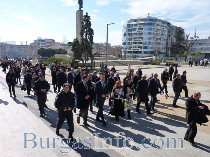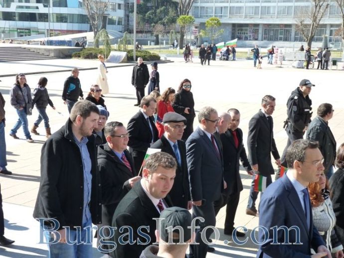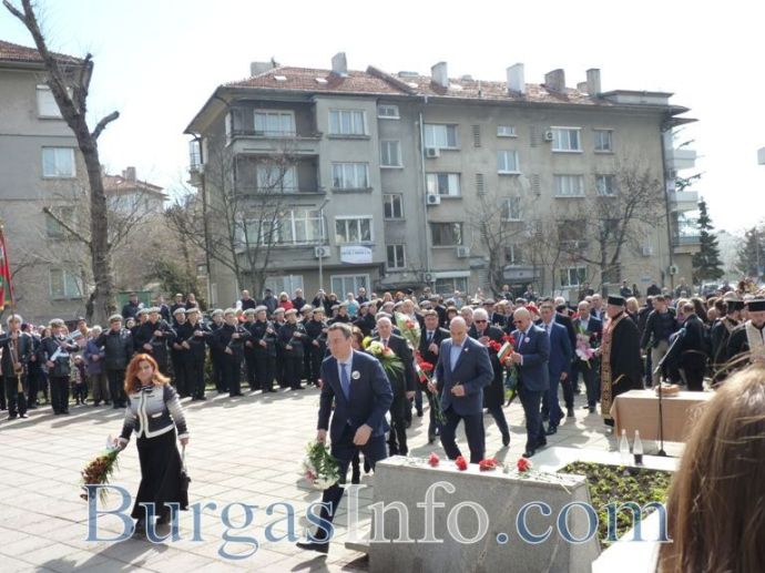 Мощен рев на мотори раздра въздуха след минутата мълчание в знак на почит към падналите за свободата на България. Точно в 11:30ч. официални лица и граждани коленичиха пред Паметната плоча на ген. А. М. Лермонтов. За поредна година честванията за 3-ти март бяха уважени и от моторджиите от „Морски братя” и Black Sea Hooligans MC – Бургас.