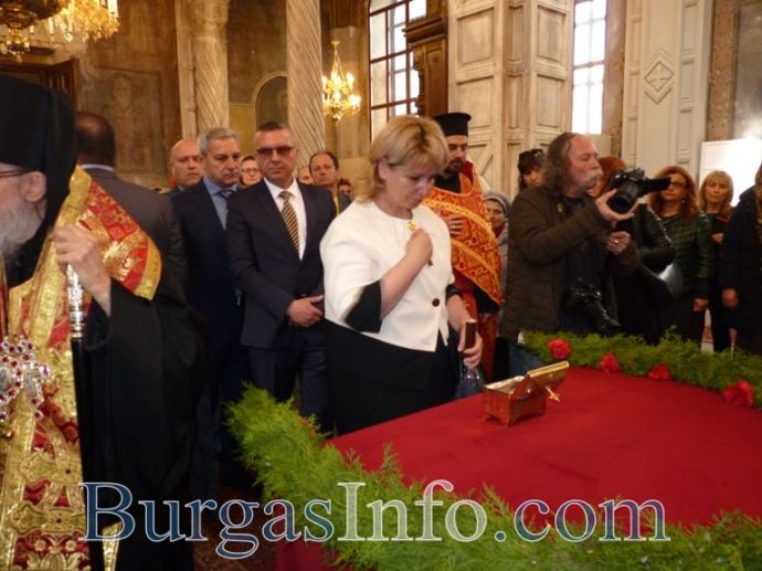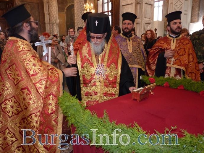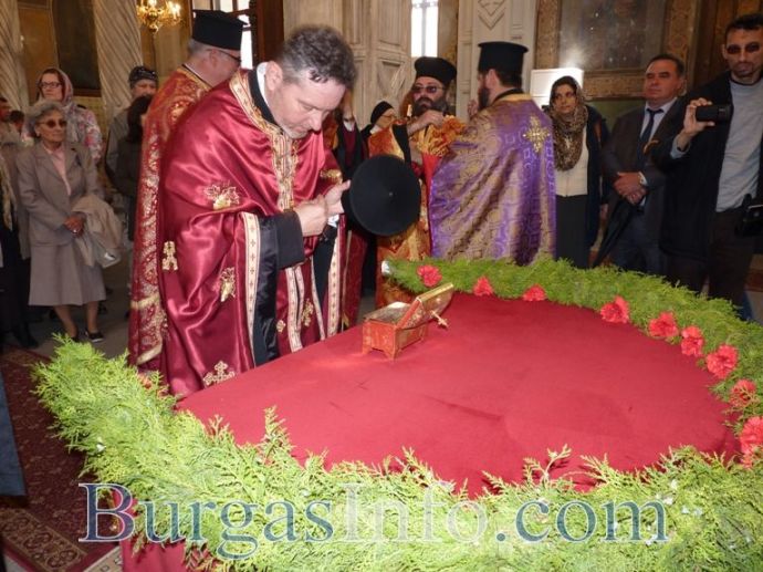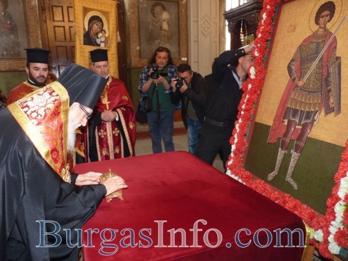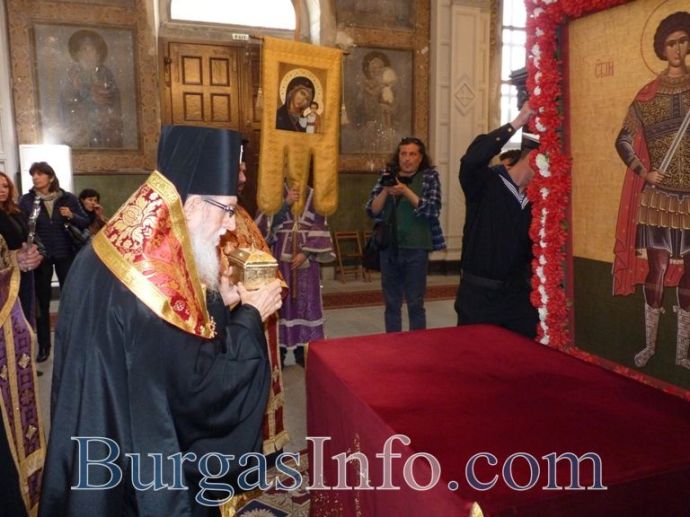 Мощите на Св. Георги Чудотворец вече са в постоянната си обител – катедрален храм „Св. св. Кирил и Методий”. Точно в 10:30ч. днес камбанен звън отбеляза края на шествието, водено от дядо Иоаникий, бургаското духовенство и военни формирования, с което частицата от светеца, дарена на Бургас, бе пренесена от църква „Св. Богородица” в храм „Св. св. Кирил и Методий”.