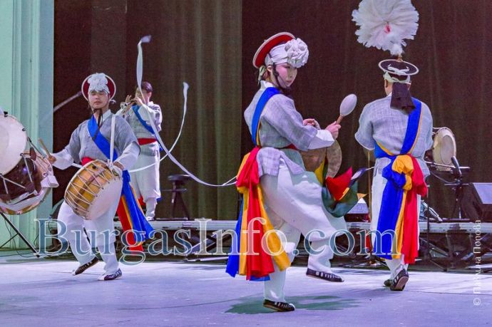 Кметът Димитър Николов и чуждестранните гости имаха възможност да се насладят на впечатляващият пърформанс на популярната корейска група "Норъм Мачи" в Летния театър.
