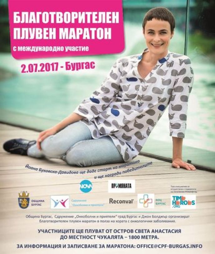 Лице на тазгодишния маратон ще бъде актрисата Йоана Буковска, която ще даде старт на маратона на 02.07.2017 г. Участниците ще преплуват разстоянието от остров Света Анастасия до парк "Росенец", плаж "Чукалята" , като финалистите ще бъдат официално наградени от Йоана Буковска.