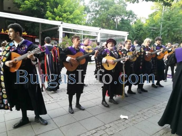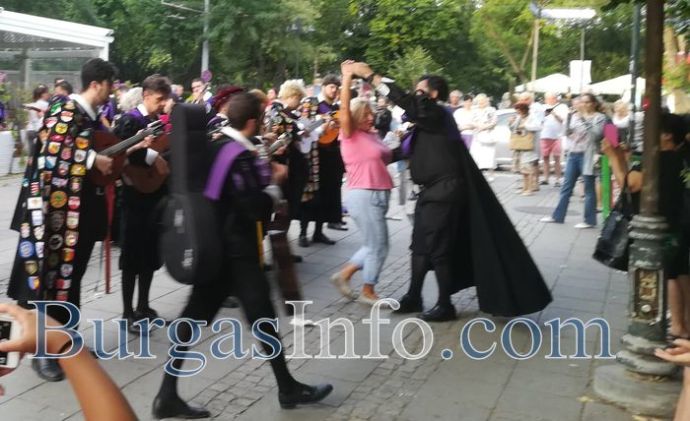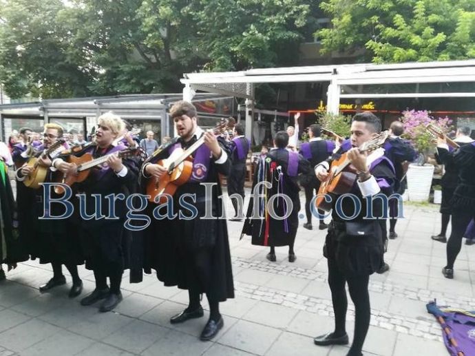 Романтика, много настроение и танци превзеха днес центъра на Бургас с изпълненията на испанските мариачи от "Ла Туна". Атрактивните музиканти дефилираха по централните улици "Александровска" и "Богориди" и запалиха емоциите, както у минувачите, така и у посетители на околните заведения.