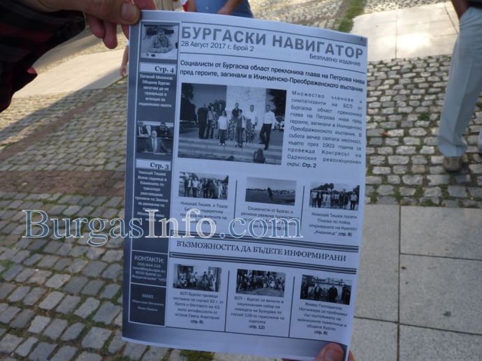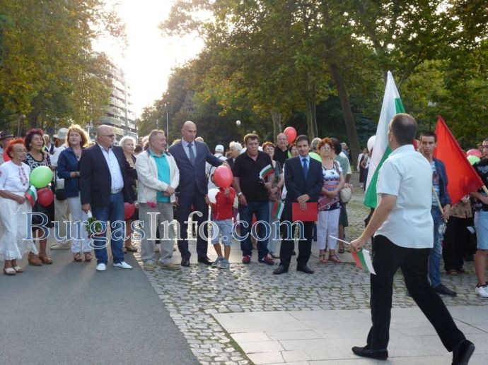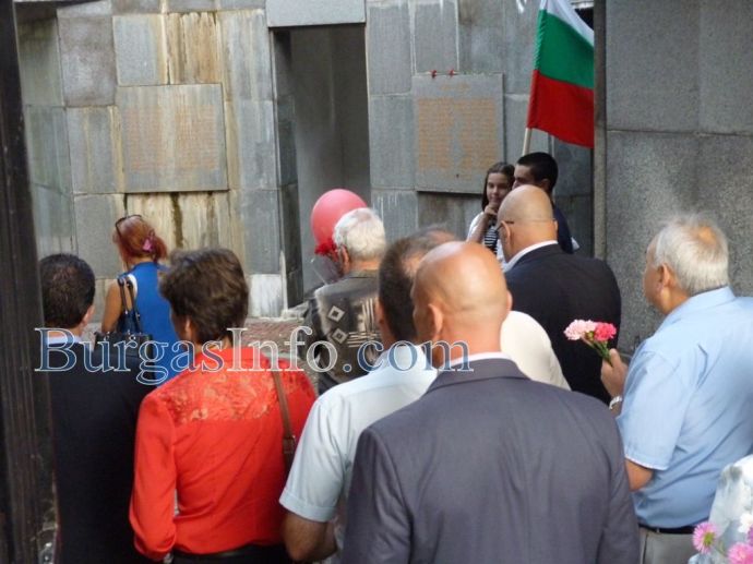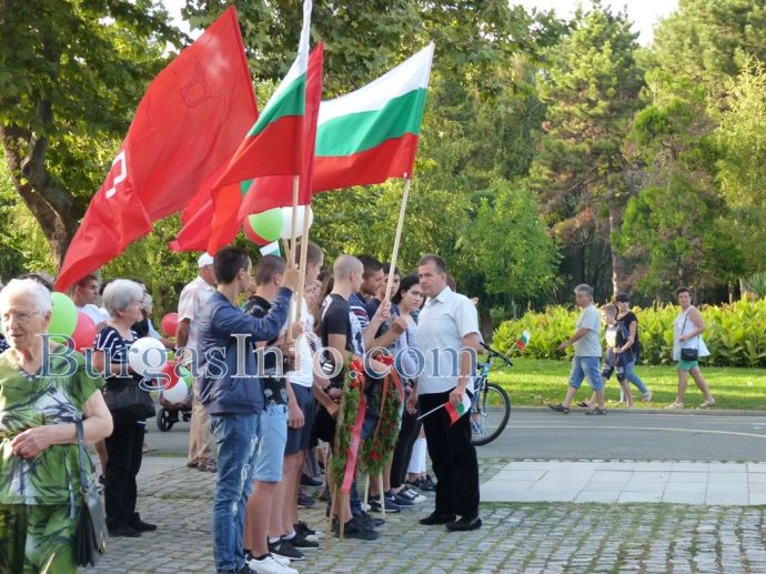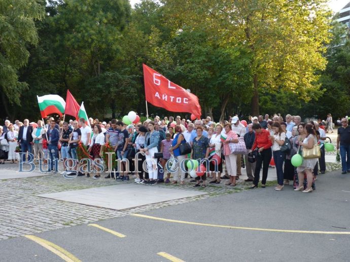 100 бургаски социалисти се събраха пред Пантеона за отбелязването на 73-та годишнина от противоречивата дата 9-ти септември 1944г. В типичния си тържествен стил те си честитяха празника от окупацията на България и края на хитлерофашизма. За втора поредна година вечният огън, пламтящ от сърцето на червена петолъчка, бе запален в Пантеона, който е отворен за посещения само на тази дата.