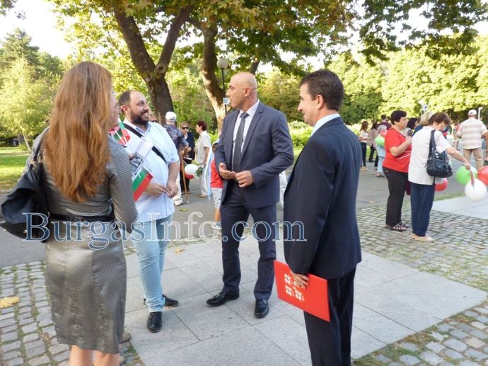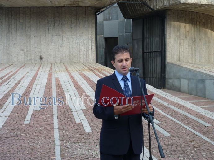 „Историята на всеки народ има своите върхове. Върхове на действието, които го тласкат в бъдещето. Тяхното изкачване не поставя рекорди, то решава съдбата на милиони хора. Един такъв връх е 9-ти септември 1944 г. Своеобразен връх в десетилетните борби на българския народ за равенство и социална справедливост”, заяви общинският председателят на столетницата в Бургас Живко Господинов пред разветите знамена.