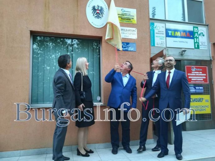 Първото Почетно консулство на Австрия у нас беше открито тази вечер в Бургас. То е оглавявано от уважавания юрист и преподавател в БСУ Радостина Иванова. Тази вечер, специално за церемонията, в морския град пристигна зам.външният министър на Австрия Михаел Линхарт, а на откриването на офиса присъстваха и областният управител Вълчо Чолаков, както и зам. кметът на Бургас Красимир Стойчев. Почетното консулство се намира в ж.к. „Славейков“ и е от изключително значение, тъй като има за цел не само да реагира в случай на нужда на австрийски туристи, но ще изгражда и развива отношения в сферата на икономиката, образованието, културата и други.