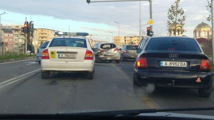 Верижна катастрофа е блокирала движението в бургаския ж.к. "Меден рудник", съобщиха очевидци. Три коли са се сблъскали тази сутрин на кръстовището до хитермаркет "Лидъл". На мястото има полиция. Материалите щети са огромни.