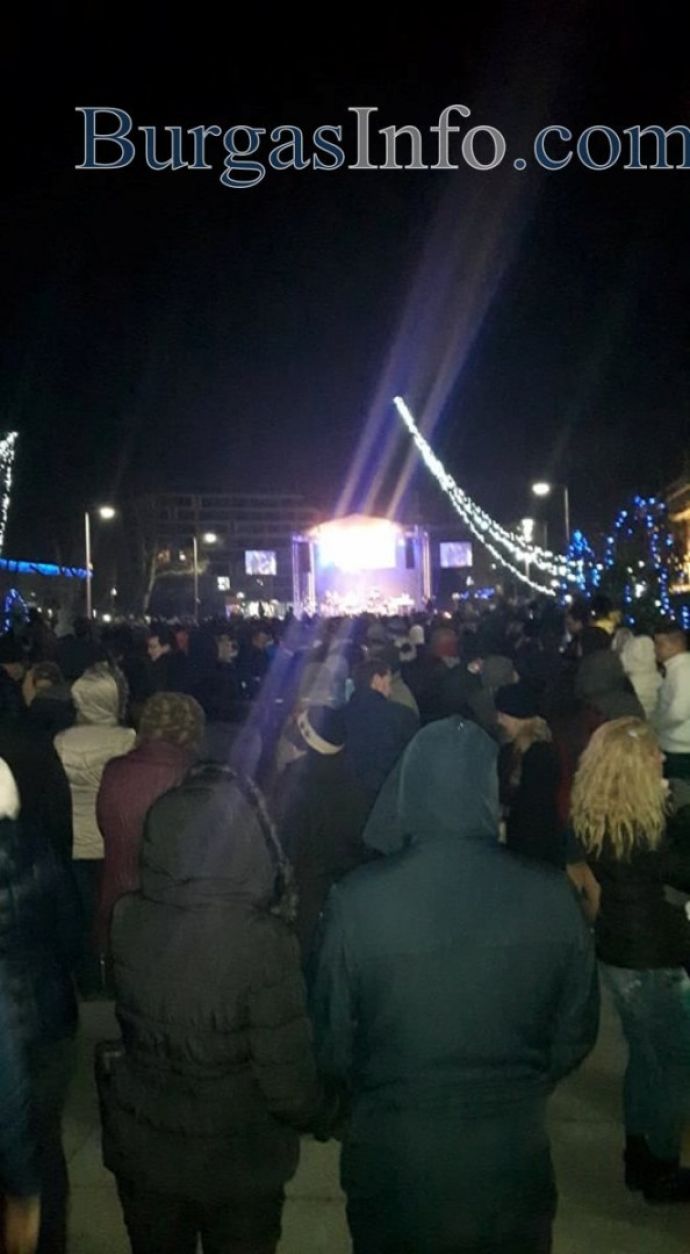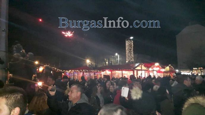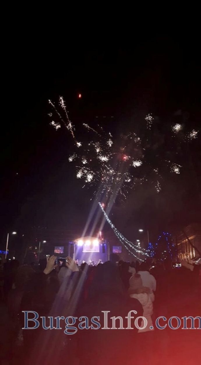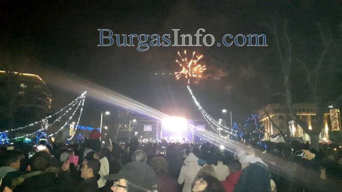 По традиция бургазлии посрещнаха Новата година на площада с пищна заря, която превърна нощта в ден, кръшно хоро под елхата и стотици наздравици с шампанско. Влюбените не пропуснаха да спазят традицията и да целунат човека, който обичат.