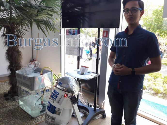 Към това е прибавен и робот, който е изработен от негови съученици. Така инсталацията напълно се вписва в темата на „Флора Бургас“, която тази година е „С поглед в бъдещето“. „Роботите ще бъдат неизменна част от нашето бъдеще“, смята Мартин.