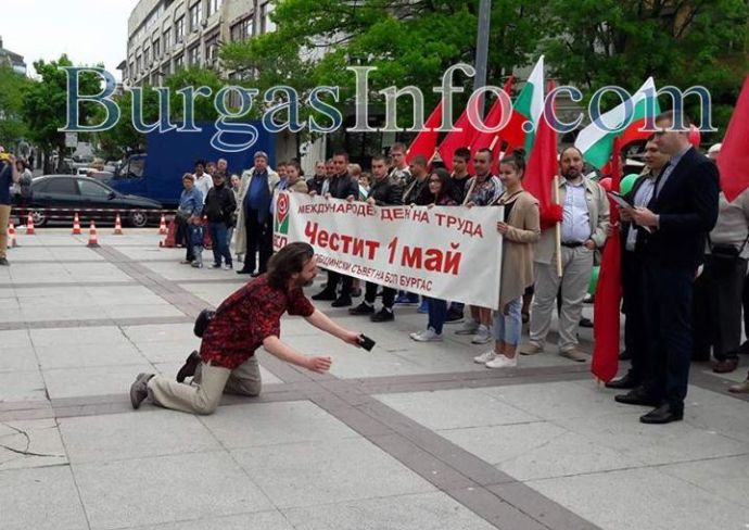 Ентусиазиран мъж посрещна шествието на БСП на сцената пред Община Бургас и се обяви за глас и цар на народа. Като видя множеството, движещо се по централната ул. „Александровска“, мъжът се вдъхнови и скочи пред плакатите и официалните лица, танцувайки и кланяйки се. След това, вдъхновен, че ще има многобройна публика скочи на сцената.“Кой организири тези хора. Кой пуска микрофона. Аз съм гласа на народа. Аз нося правдата в себе си. Аз нося закона. Ти пазиш мене, аз пазя тебе.“, викаше несвързано господинът, който случайно или не, беше облечен с риза в тематичния червен цвят. Полиция го свали от сцената и му провери документите. Това обаче не го спря и той отново продължи с ексцентричното си поведение. Накрая се наложи да бъде отведен в близкото полицейско управление.