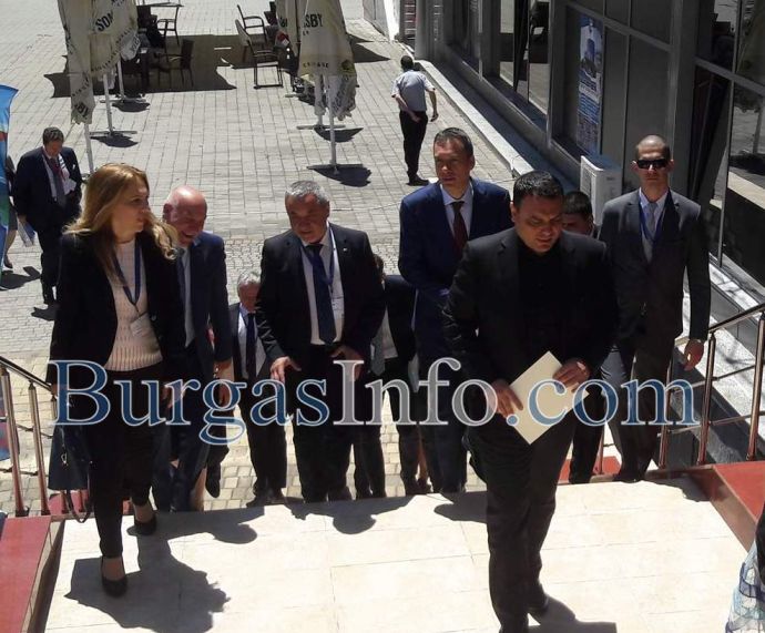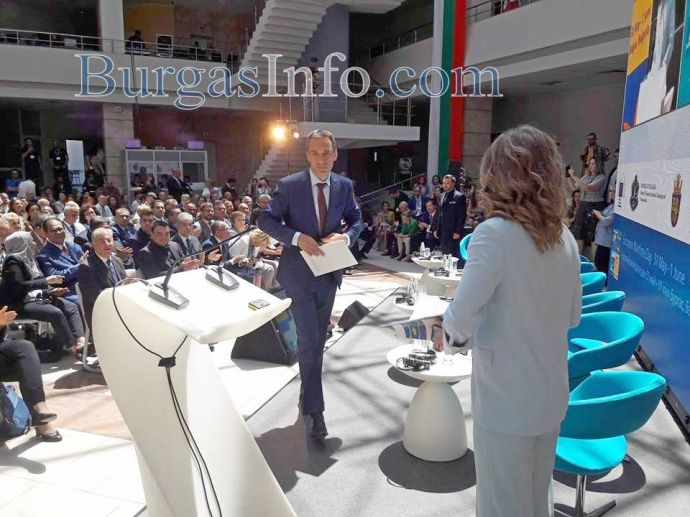 „Това е възможност, да се срещнат над 700 участици от различни държави, институции организации и бизнес, за да демонстрират отговорно отошение и постижение в политиките, свързани с морето и с устойчивото използване на неговите ресурси, да дадем своя градски принос към провеждането на Българското председателство на Съвета на Европейския съюз. Бургас Ви посреща със слънчев залив, уютна пъстра атмосфера на градските улици, с разнообразието на културни събития, присъщи на морския град. Бургас обаче Ви посреща и с хората, които са неговата истинска и неподправена визитна картичка. За тези хора морето не е сезон, а ежедневие. Те го харесват, ценят това, което то им дава, уважават неговата стихия. Това са хората, които превръщат малкото рибарско селище в началото на 20-ти век в голям административен и културен център, какъвто е днес. Затова Ви представям града чрез лицата на тези бургазлии, които с ума, талната и идеите, са допринесли за развитието на този район. Бургас е градът на щедростта и добротворчеството, днес градът се гордее с модерни училища, университети, утвърждава се като град, в който културата, науката и бизнеса си взаимодействат, за да инвестират в най-важния капитал – младите хора. Основите на тази модерна политика полагат поколения бургазлии преди повече от 200 години, които със своята далновидност и щедрост предопредделят ценности, които ние изповядваме днес.“, каза кметът Димитър Николов.
