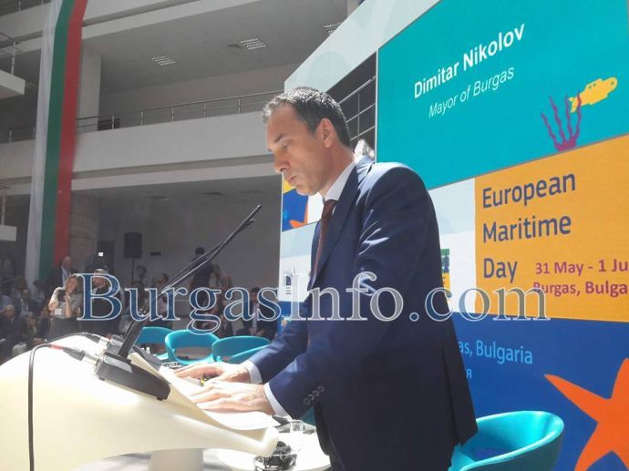 Приветствам Ви в Бургас, на 11-тото издание на Еворпейския морски ден, най-значимото събитие за морските политики в Европа. Щастлив съм, че тази година това се случва в Бургас – град, неразривно свързан с морето. Това е отговорост, потенциал, вдъхновение. Градът се готви за това събитие повече от половин година. Възприехме Европейския морски ден като предизвикатество и възможност. Предизвикателство да бъде платформа за дискусии по една от основните политики на Европейския съюз, да остави своя отпечатък в историята на инициативата Европейски морски ден. Това заяви кметът на Бургас Димитър Николов при официалното откриване на Европейския морски ден, което се състоя в Атриума на Бургаски свободен университет. На него присъства и вицепремиерът Валери Симеонов, министърът на транспорта Ивайло Московски, депутати.