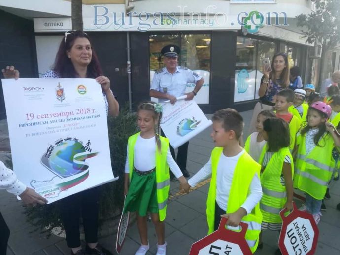 Десетки деца днес са подготвили изненада за шофьорите в Бургас във връзка с Европейския ден без загинали на пътя. Възпитаниците на детекса градина „Звездица Зорница” първи днес казаха: „Стоп, пресичат деца”. Акцията, организирана съвместно с ОДМВР Бургас и РИОСВ по линия на TISPOL с помощта на на международната асоциация на застрахованите и пострадалите при катастрофи, се проведе на пешеходната пътека пред 5D киното в ж.к. „Зорница”.