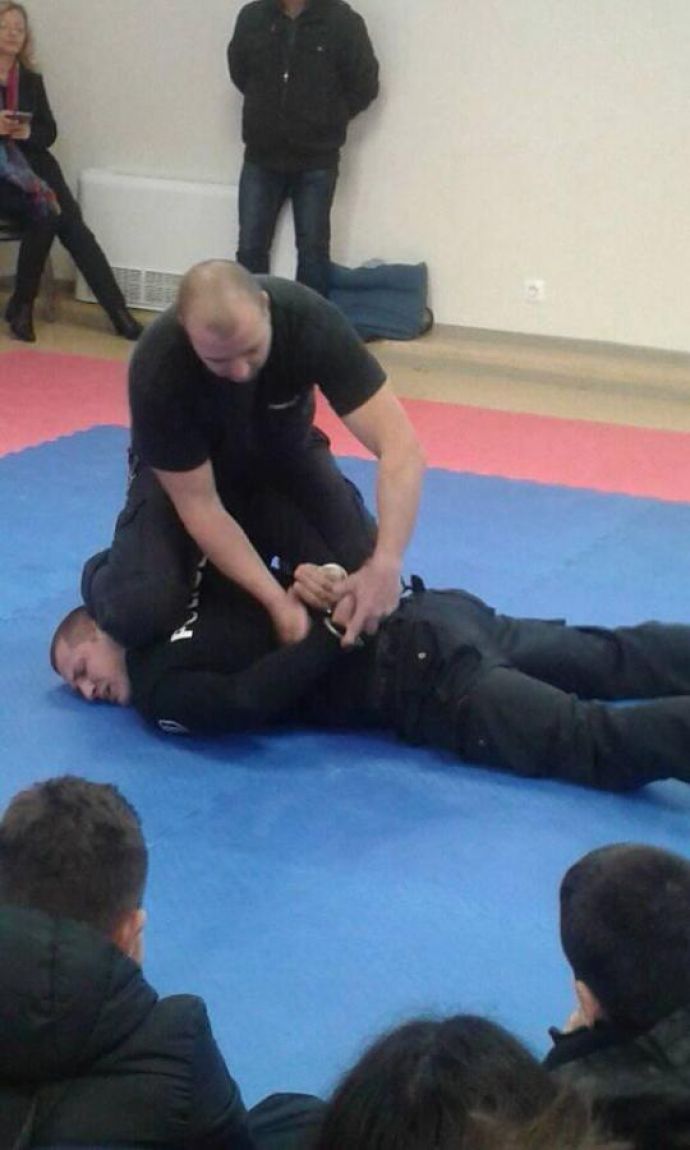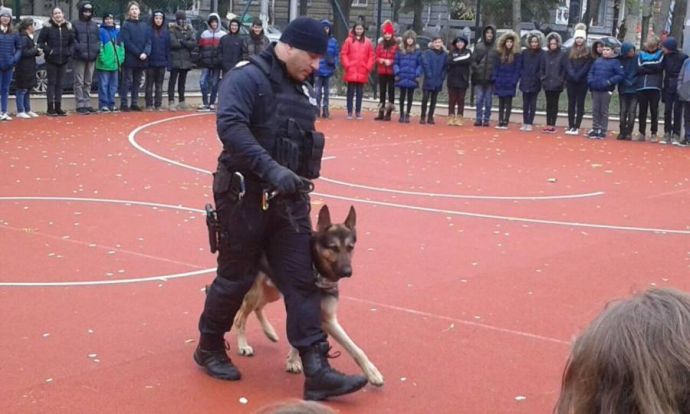 Занятието протече в две части – на терен и на закрито, като в първата част на небивал интерес се радваха демонстрациите на способностите на двете полицейски кучета. Едното куче безпрекословно се подчиняваше на командите на водача си, а впоследствие задържа „особено опасен престъпник”, а второто – безпогрешно надуши на няколко пъти скрити в специални контейнери наркотични вещества.