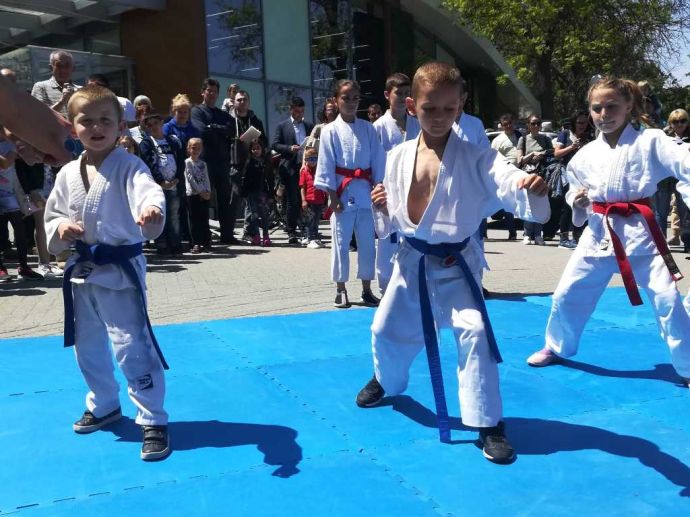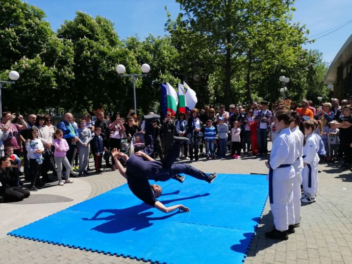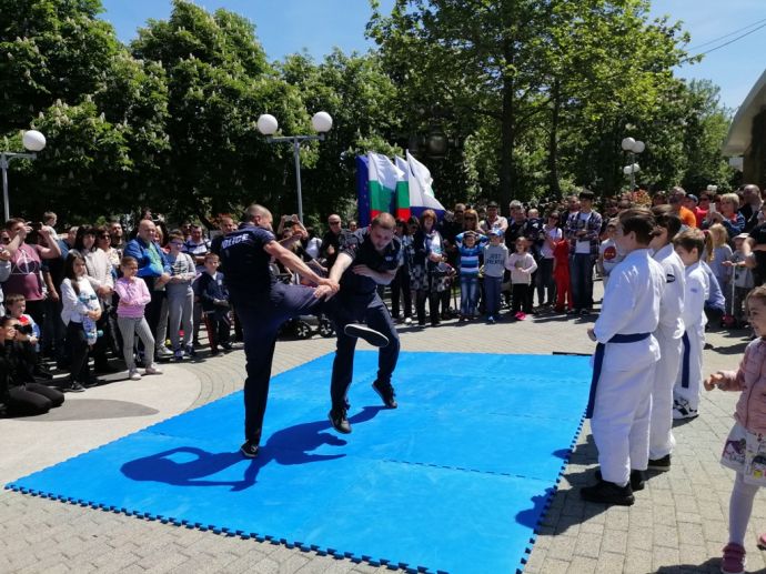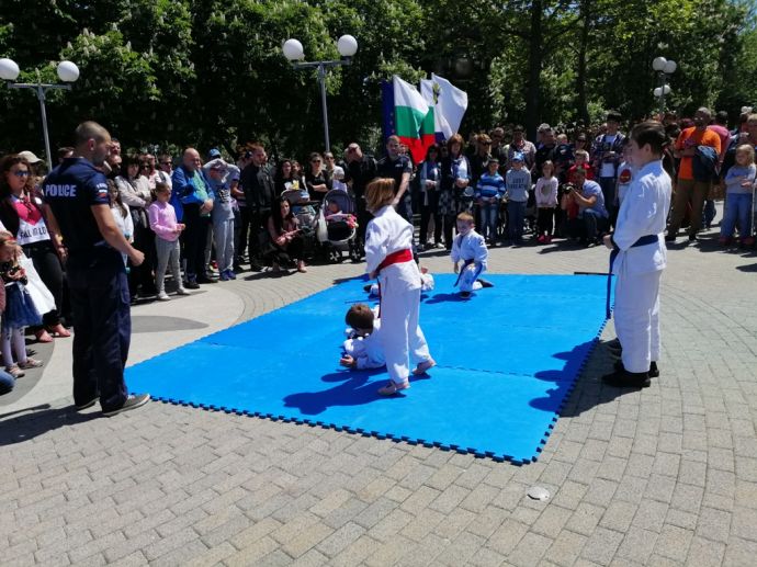 Преди това полицай Венелин Русинов от полицейски клуб по джиу-джицу направи атрактивна демонстрация на уменията на малките си възпитаници. Публиката буквално онемяваше при зрелищните хватки и уменията на децата.![]()