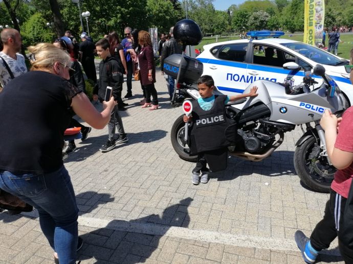 Стотици хора поискаха да си направят снимка, да се докоснат до полицейските жилетки и да се качат на моторите и патрулните коли.