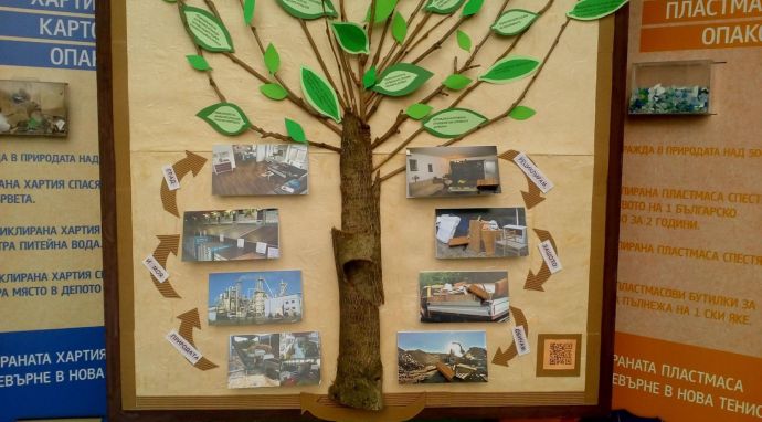 Паното, донесло първото място в конкурса, показва на всеки ученик и родител, че цикълът за рециклиране на дървесината започва от дома на всеки един жител на Бургас.