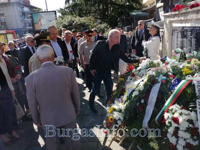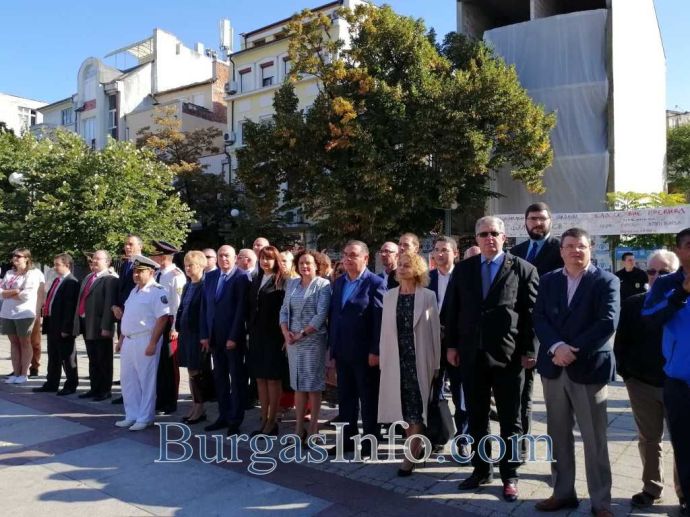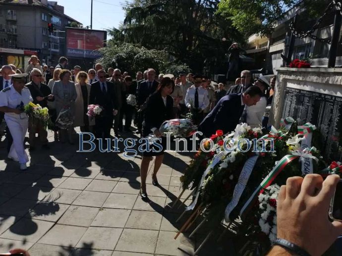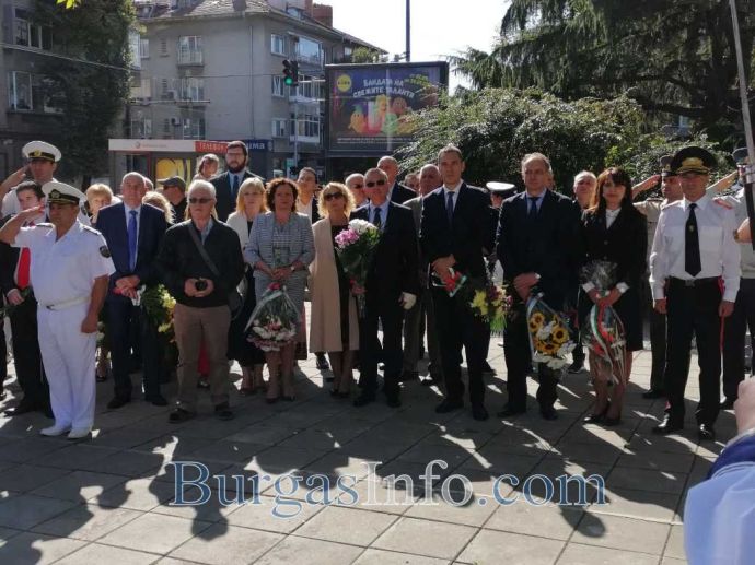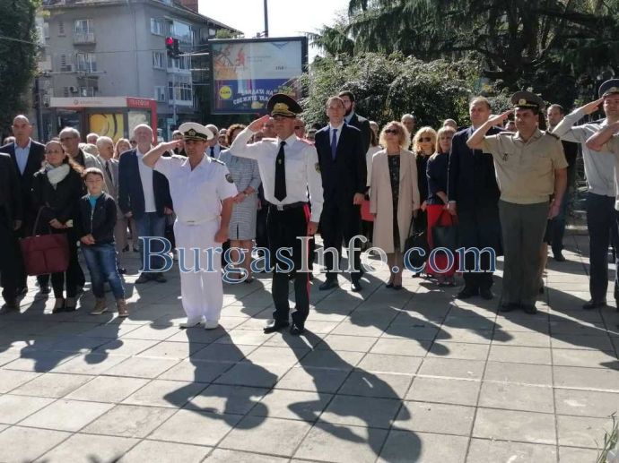 "Събитията следват своя логичен завършек. След обяване на Съединението, българският елит и духовност подкрепят този изблик на реализиране на националата мечта за независимост на България. В Бургас има малко по-специфичен детайл по отношение на акта на обявяване на независимостта. В мига, в който Фердинанд прочита манифеста за независимост зад крепостните стени на Царевец, в същото време капелмайсторът на 24-ти Черноморски пехотен полк Георги Шагунова написва химна на независимостта на България. Този химн след това официализира всички чествания, свързани с тази дата", заяви кметът на Бургас Димитър Николов. На честването присъстваха зам.-областният управител Севдалина Турманова, народните представители Ивелина Василева и Димитър Бойчев, началникът на ОД на МВР Бургас ком. Калоян Калоянов, председателят на ОбС КОстантин Луков, общинският съветник от РБ Тошко Иванов, негови колеги от ОбС, членът на НИС на СДС Дончо Златев, представители на политически сили и много граждани. Както всяка година, точно до строя своето място заемаха и ветераните.![]()