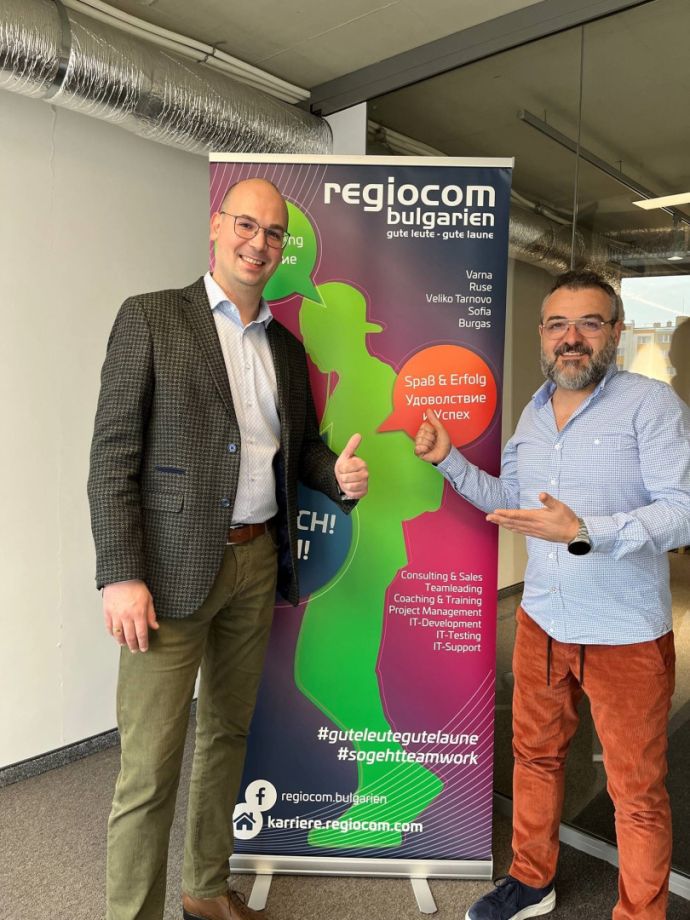 „Работата в една немска фирма в България има множество предимства за мен като германец. Аз имам възможност да работя в познатата ми структурирана среда и едновременно с това да постигам прекрасна симбиоза между българската и немската култура. В ръководените от мен проекти постигаме хармония и празнуваме успехите си заедно. Радва ме всекидневния фийдбек от моите колеги по отношение на топлата и приятелска атмосфера в офиса. Региоком като работодател се грижи не само за заетостта на своите служители, но и за зараждането на нови приятелства и добро настроение по време на работа. “