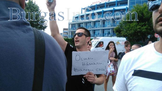 Скандирания „Валери – оставка“ и „Бойко, помогни ни!“ озвучават демонстрацията. Млад мъж издигна лозунг „Усили, намали, Валери спи!“. Всички участници са категорични, че акция "Тишина" е удар върху бизнеса и доходите на обикновените хора, работещи в туризма.