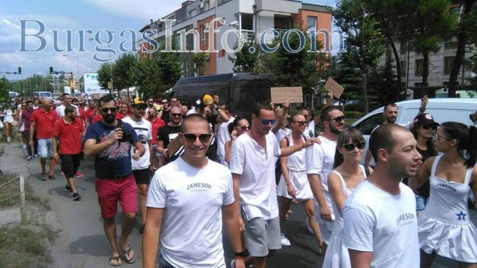 Над 500 души – служители на заведения в Слънчев бряг излязоха днес на протест срещу акция „Тишина“, подета от вицепремиера Валери Симеонов. Както БургасИНФО съобщи те се събраха днес на импровизиран протест. Шествието тръгна от паркинга на една от най-хитовите дискотеки в комплекса - „Бедруум“, която беше сред подложените на проверка, начело на Симеонов. „Искаме си работата, кой ще ни плаща заплатата?“, масово питат служителите, които са предимно млади хора. Те предвиждат да проведат нов протест и в събота, като бунтът им ще продължи, докато не се постигне решение на проблема.