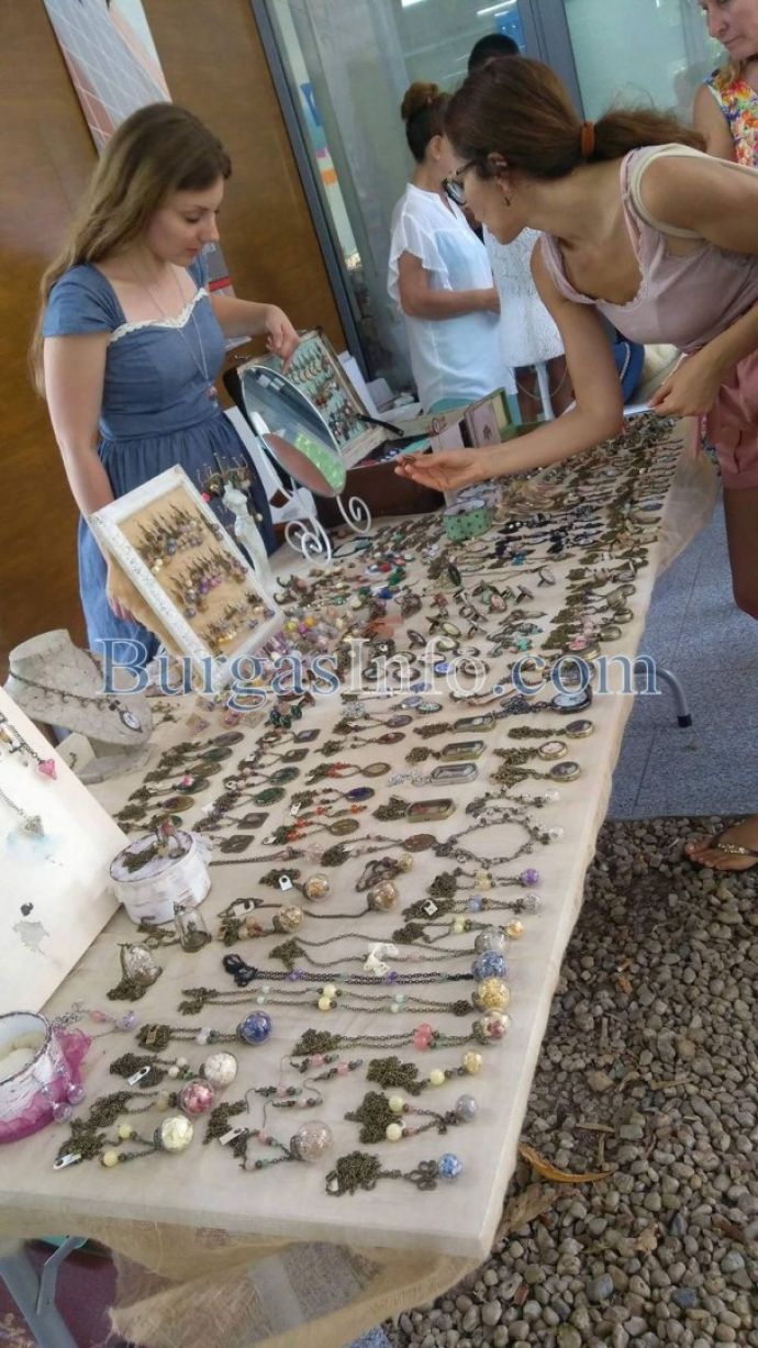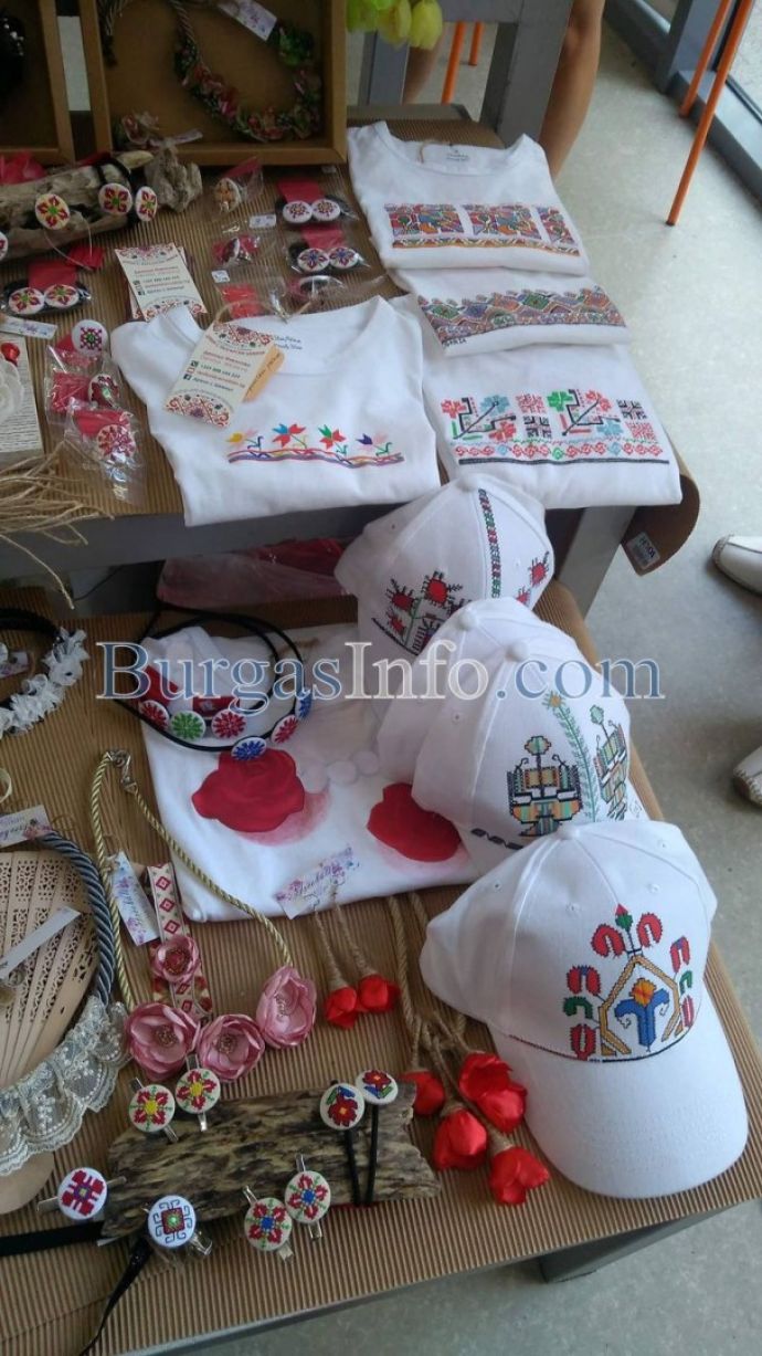 Лятното издание на хенд мейд фестивала, който се провежда в момента в Експоцентър "Флора" - Бургас, отново успя да изненада посетителите си. Този път нов акцент са памучните дрехи, подходящи за носене както в ежедневието, така и по повод, с ръчно изрисувани с българска шевица. Тяхната авторка е лъчезарната Деница Николова от Поморие, която лично обикаля цялата страна, за да подбере най-добрите кройки и материи за своите модели. Изработва всяка дреха в един-единствен размер, цвят и модел, а рисунъка е толкова перфектен, все едно не е правен от човешка ръка, а от машина. С тениските, туниките, ризите, шапките и аксесоарите, които продава може да се облече цялото семейство - има мъжки, дамски и детски.