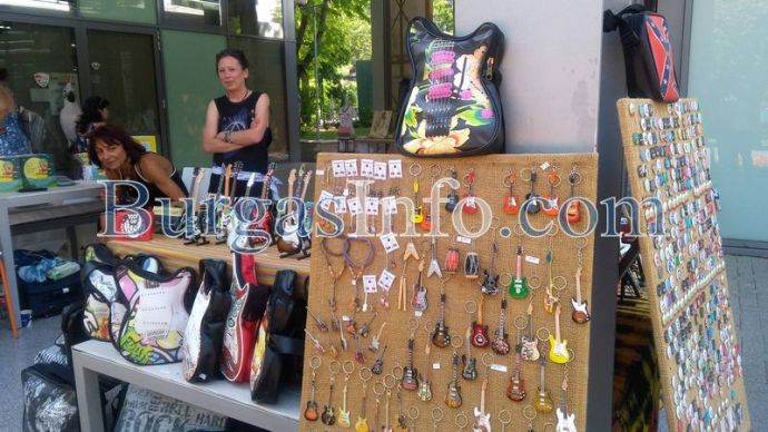 А само един щанд преди дрехите с рисувана българска шевица, още на входа ще ви посрещнат гостите от rocksandbg, които вече са неизменна част от всеки бургаски фестивал със своите рокаджийски аксесоари - чанти, статуетки, значки, китари и др.