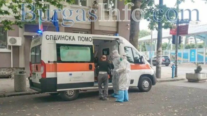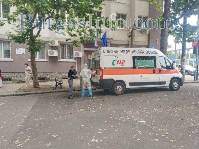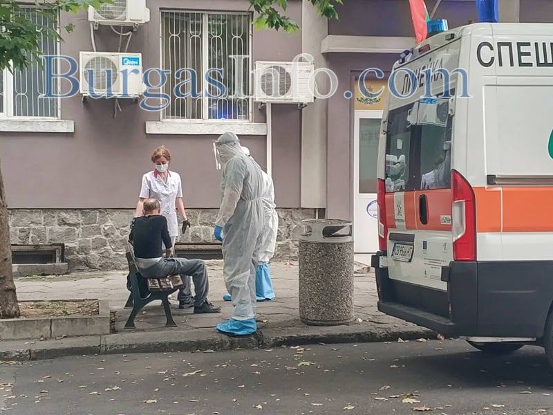 Медицински екип, оборудван със специално защитно облекло, отведе с линейка възрастен мъж от центъра на Бургас преди минути. Прибирането на човека изглеждаше като цяла акция, очевидно заради специалните мерки за сигурност поради съмнения за коронавирус. Човек беше на пейка пред сградата на РЗИ, откъдето медиците го отведоха.