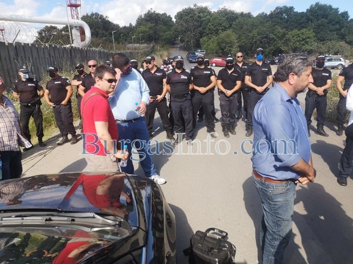 Малко преди разклона кордонът полицаи са спрели Христо Иванов и неговите привърженици. Там са и бургаските общински съветници Димитър Найденов и Константин Бачийски. На място е и лично началникът на Охранителна полиция ком. Неделчо Рачев. Целият път след това гъмжи от полиция. Взети са и мерки срещу коронавируса, като младежи раздават дезинфектанти и маски.