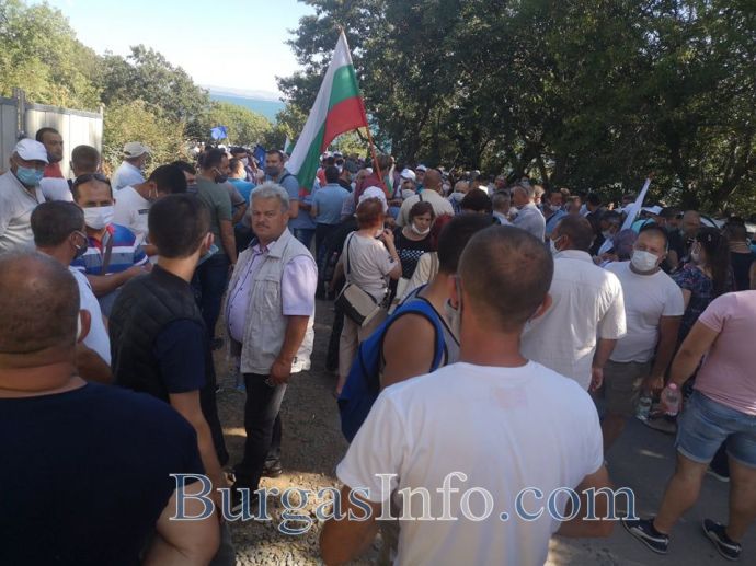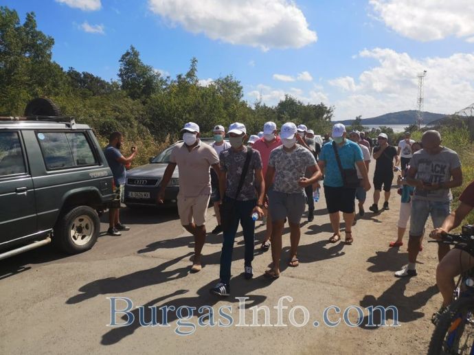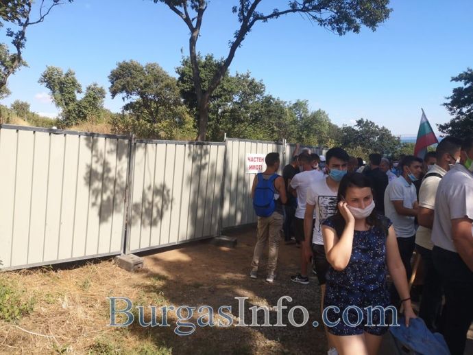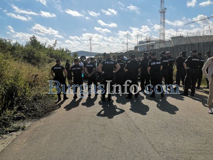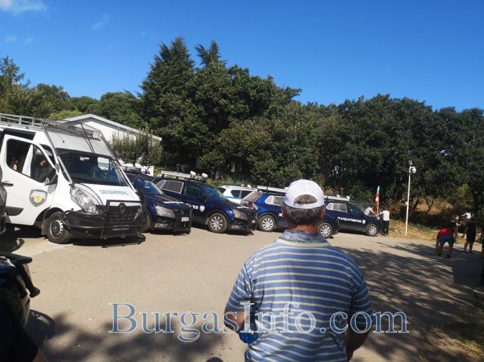 Както вече съобщихме, хората, които тръгнаха по суша, за да плажуват на охраняем плаж, са спрени на отбивката, водеща към сарая. Целият участък гъмжи от полиция, за да не бъдат допуснати сблъсъци. Към този час напрежениe няма.