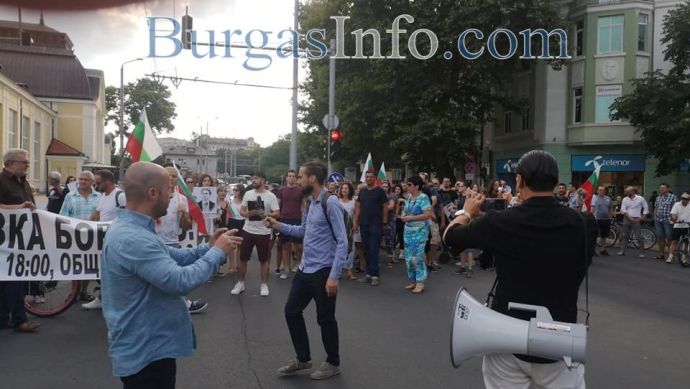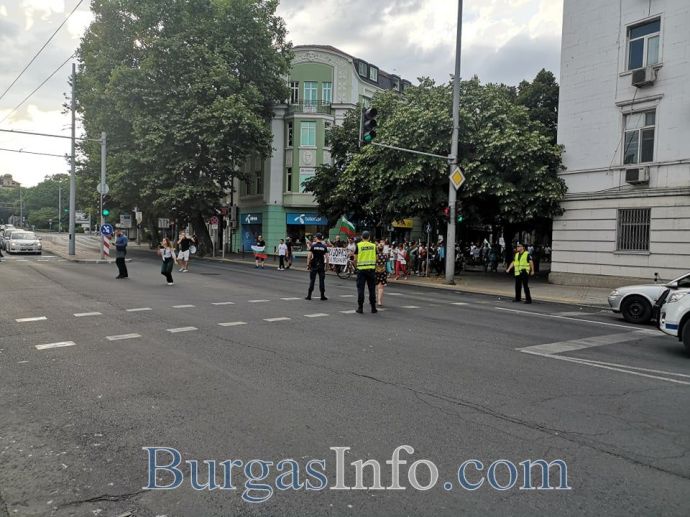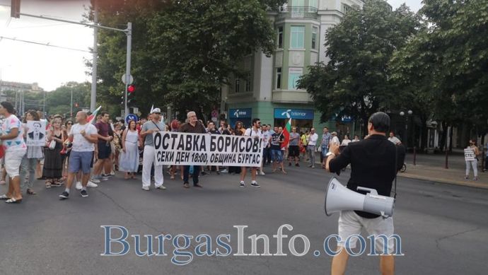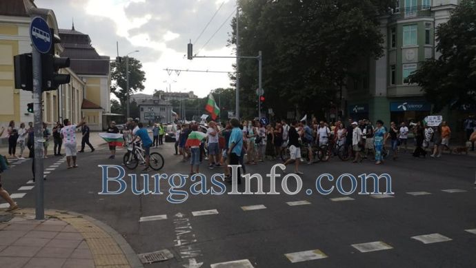 Около 100 бургазлии се събраха тази вечер на традиционния за последните 10 дни протест на площад „Атанас Сиреков” в центъра на Бургас. Тази вечер те замениха традиционното си шествие по пешеходната улица „Богориди” с демонстрация по ключовия бул. „Булаир”.