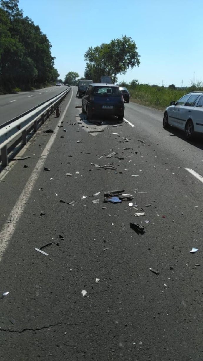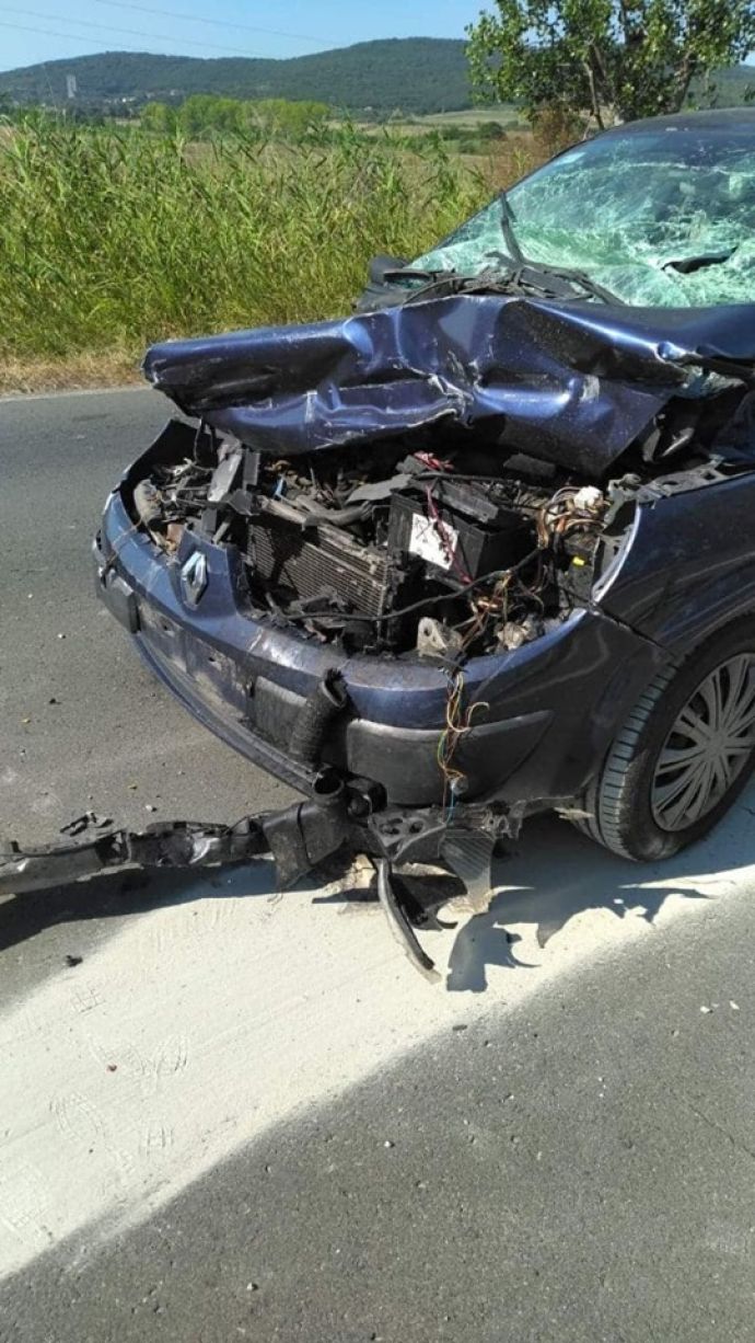 Лека кола "Рено Меган" с бургаска регистрация се удари в лекотоварен автомобил, също с бургаска регистрация. Катастрофата е станала около 09.36 ч. днес по пътя Бургас - Черноморец, непосредствено след кръстовището за Ати,я в посока Черноморец, От сблъсъка са настъпили сомо материални щети. Няма задръстване в пътния участък