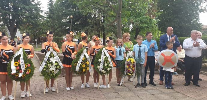 Ученици от Ахелой поднесоха венци и цветя от името на Община Поморие, Общински съвет – Поморие, Кметство Ахелой, НЧ „Светлина 1934” – Ахелой, ОУ „Христо Ботев” – Ахелой.