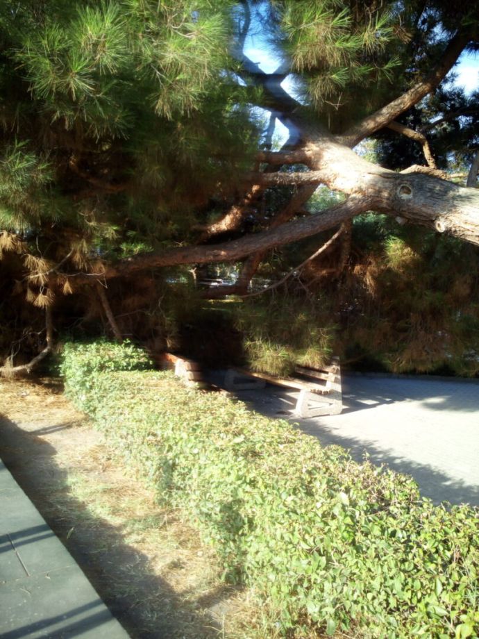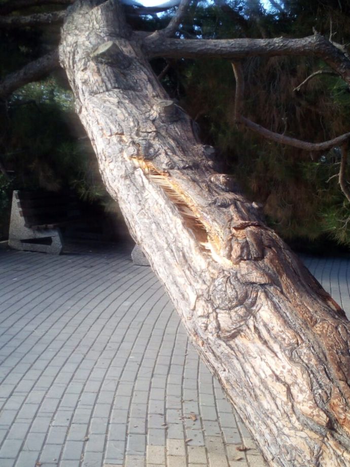 След получен сигнал, комисия, назначена от кмета Иван Алексиев извърши оглед на дървесната растителност в парка до НЧ „Светлина“, сред които и т.нар. полегнал бор. Проверката на ОП „Озеленяване, горско и селско стопанство“ установи, че дървото, което се намира в близост до детската площадка и което бе със силно нарушение на естествения си вертикален растеж, е разцепено по дължина на ствола, като цепнатината е с дължина около 80 см. и дълбочина – 30 см. Борът е паднал и строшил дъските на близката пейка. По време на огледа, дървото е продължавало да уляга, а разкъсването на дървесните проводящи снопчета е издавало скърцащ звук, което го прави изключително опасно за живота и здравето на посетителите на парка и на детската площадка. Това наложи предприемането на незабавни мерки за премахване на опасното 65-годишно дърво.