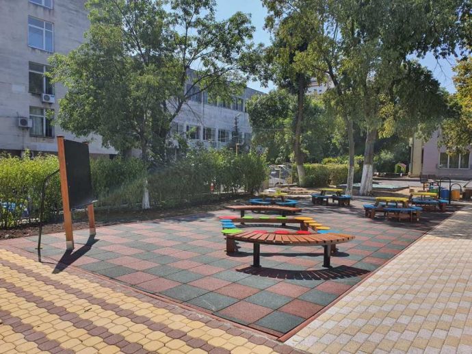 В ДГ „Раковина“ старите уреди на двора, бяха демонтирани, а плочките– премахнати. На тяхно място е положено ново покритие на алеите и нови съоръжения за игра на децата в двора. Монтирани са нови катерушки и комбинирани съоръжения и два батута. В момента се довършват терасите и стълбищата към градината, които също се обновяват.