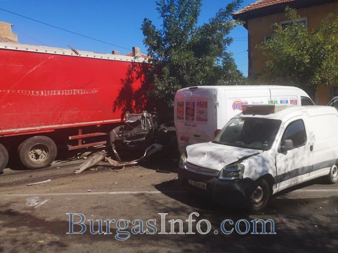 Камионът, който буквално смаза 10 коли преди кръговото кръстовище в Айтос, е бил пълен с жито, което допълнително прави тежестта му огромна. Той буквално летял по улицата, която в момента прилича на бойно поле. Първоначално е засегнал пешеходка, след което удря две коли, а по-късно, непосредствено преди кръговото, помита още 7. Очевидци твърдят, че най-вероятната причина за автокасапницата е, че спирачките на тежкотоварния автомобил са отказали.![]()