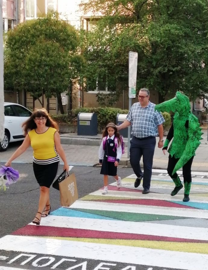 В първия ден на новата учебна година любими приказни герои от Кукления театър помагаха на малките ученици, техните родители и на граждани да пресичат безопасно на оживени пешеходни пътеки в града. Акцията на Областен информационен център - Бургас се провежда за поредна година в "Европейската седмица на мобилността" и е една от добрите практики за превенция за безопасно придвижване в редица страни от Европейския съюз.![]()
