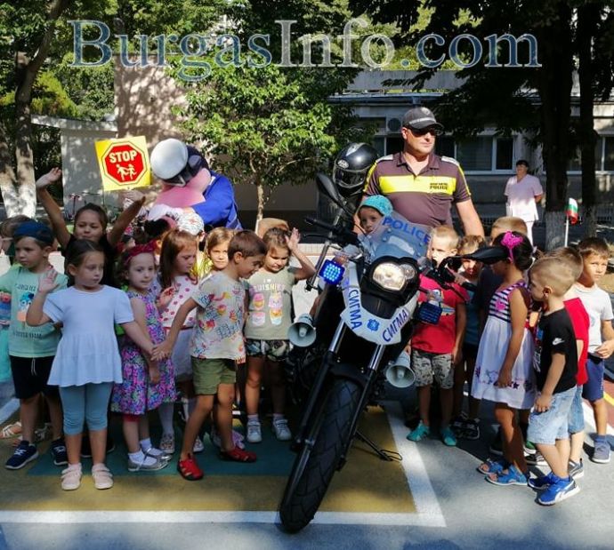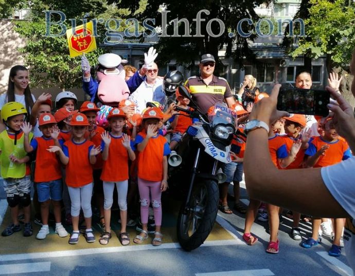 Най-стриктните и пълни с еснтуазъм пътни полицаи в Бургас днес са възпитаниците на детска градина „Х.К. Андерсен“ в Бургас. С много желание те нагледно видяха каква е работата на униформените служители на пътя, къде и как трябва да пресичат пешеходците, как правилно се пътува в кола и как се слагат предпазни колани. Децата дори тестваха с истински дрегер директорката на училището г-жа Атанасова, за да видят как работи машинката. Мероприятието беше водено от експертът по „Връзки с обществеността“ към ОДМВР-Бургас Цветелина Рандева.