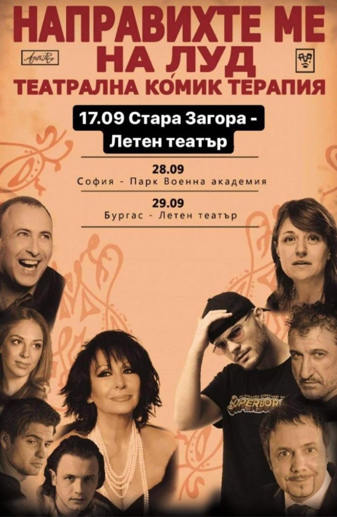 Театрална комик терапия със специалното участие на Йорданка Христова и Боро Първи. Режисьор е Богдан Петканин. Участват: Руслан Мъйнов, Ненчо Илчев, Мария Сапунджиева, Кирил Ефремов, Павел Иванов, Рада Кайрякова, Тихомир Благоев .![]()