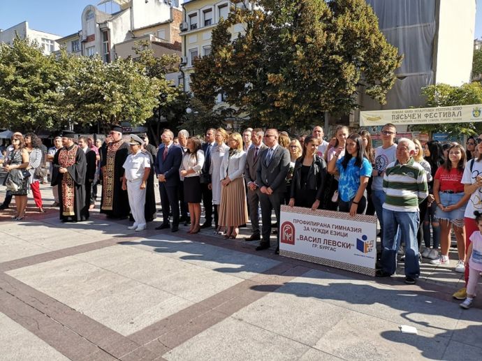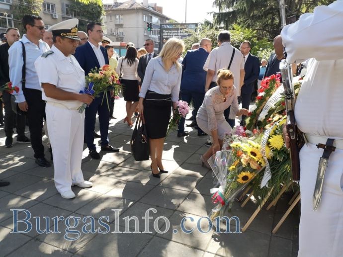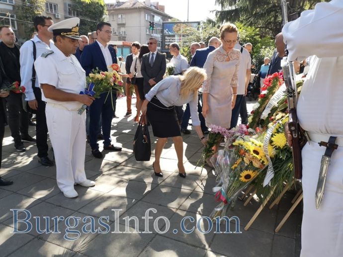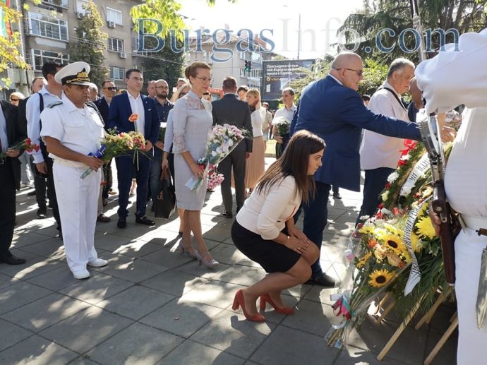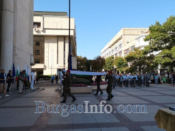 С ритуал по вдигане на националното знаме пред сградата на Община Бургас започна тържественото отбелязване на Деня на независимостта в града. На церемонията присъстваха областният управител Вълчо Чолаков, зам. кметът Диана Саватева, депутати и общински съветници от различни политически сили.