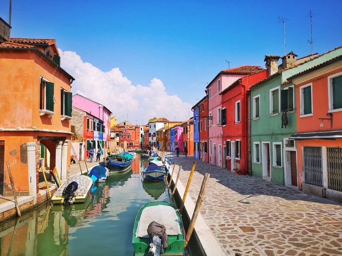 Затова в разговори между рибарите и кмета Димитър Николов се роди идеята за освежаване фасадите на сградите край каналите така, че селището да придобие атмосфера, подобна на средиземноморско градче (на снимката можете да видите един от моделите, които ще бъдат следвани - така изглежда остров Бурано в лагуната на Венеция).