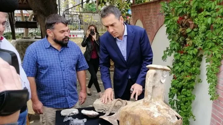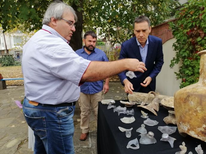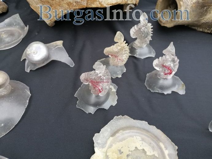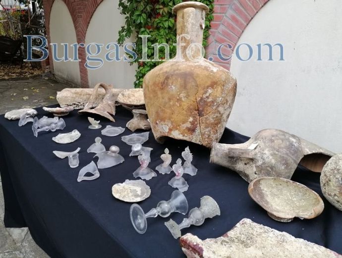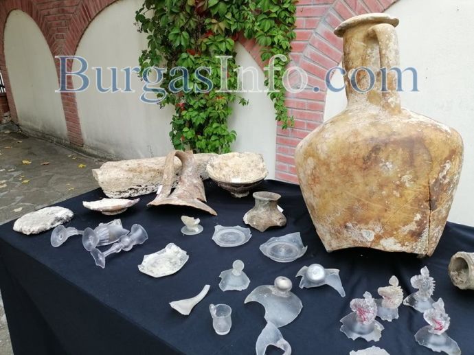 Бяха представени най-запазените находки от проучванията – амфори, бойна каменна топка, каменен щок, стъклени предмети и др.