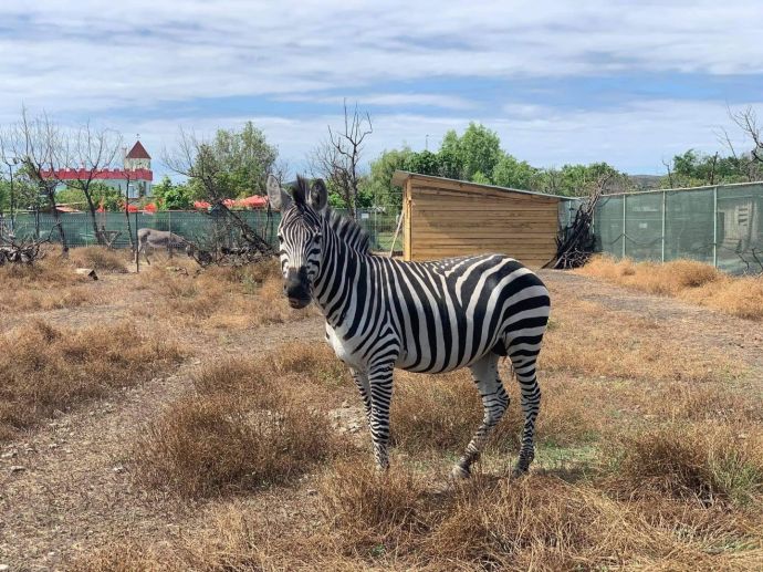 Най-новият обитател се адаптира бързо и се превръща в любимец на децата. Той е мъжки екземпляр от подвида зебра на Бърчел. Такива животни достигат височина 110-147 см. при рамото, 200-250 см. дължина и тежат между 175 и 390 кг. Отличават се с характерната си окраска, като ивиците на всяка зебра са уникални и различни.![]()