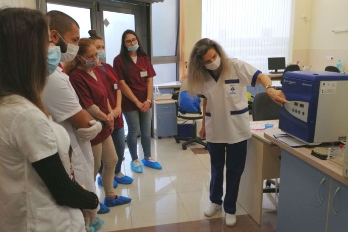 Занятието се проведе при всички мерки за безопасност. Студентите проследиха хода на микробиологичното изследване. Те се запознаха с основните насоки за вземане, транспорт и съхранение на пробите, тяхното регистриране и методите за диагностика. Имаха възможност да наблюдават микроскопски препарати и за първи път да видят как изглеждат различни групи микроорганизми. Доц. Михайлова демонстрира техниката на микробиологична посявка и разясни значението на антибиограмата. Студентите научиха за ролята на бързите тестове при доказване на патогенни микроорганизми в дихателната система, храносмилателната система и половата система. Накрая бъдещите лекарски асистенти влязоха и в генетичната лаборатория на „ЛИНА”, където се правят редица изследвания, включително и за новия коронавирус.