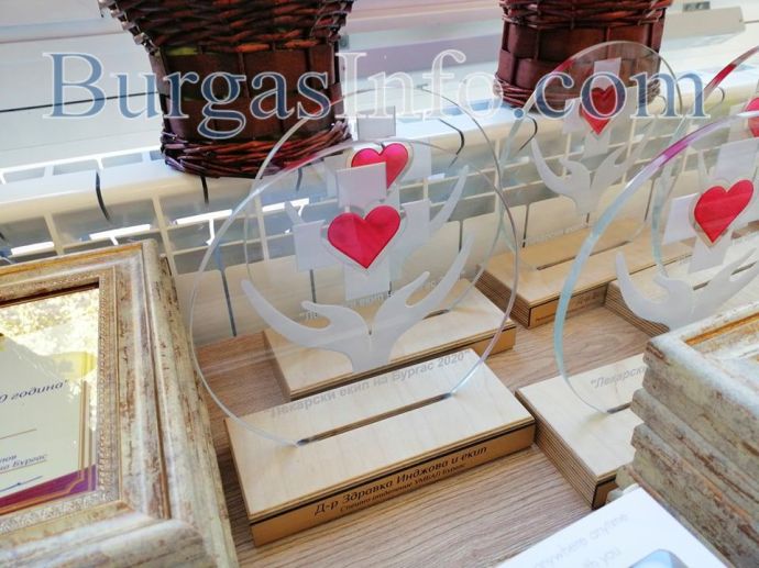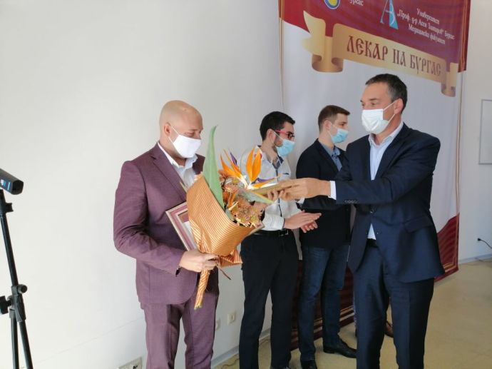 Д-р Жени Стоичкова, д-р Павел Хрусанов, д-р Павел Добрев, д-р Владимир Корновски, д-р Георги Шуплев,екипите на Инфекциозно отделение на УМБАЛ-Бургас, на Спешно отделение към УМБАЛ-Бургас, на Отделение по анестезиология и интензивно лечение в УМБАЛ-Бургас, на СБАЛПФЗ – Белозробната болница, на Дентален център I, Медико-диагностична лаборатория "ЛИНА" и на Регионална здравна инспекция в Бургас (РЗИ) бяха отличени на първите годишни награди „Лекар на|Бургас“ за 2020 година. Церемонията по връчването на приза на заслужитилите медици се състоя в Медицинския факултет. Тя започна с отдаването на почит с аплодисменти към началника на АГ-отделението в УМБАЛ „Дева Мария“ доц. д-р Георги Хубчев, който ни напусна в събота след 15 дни битка в COVID 19.