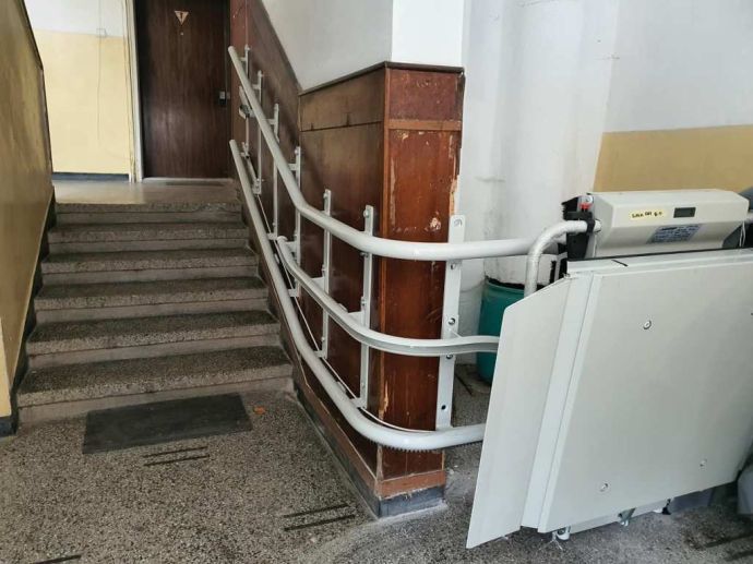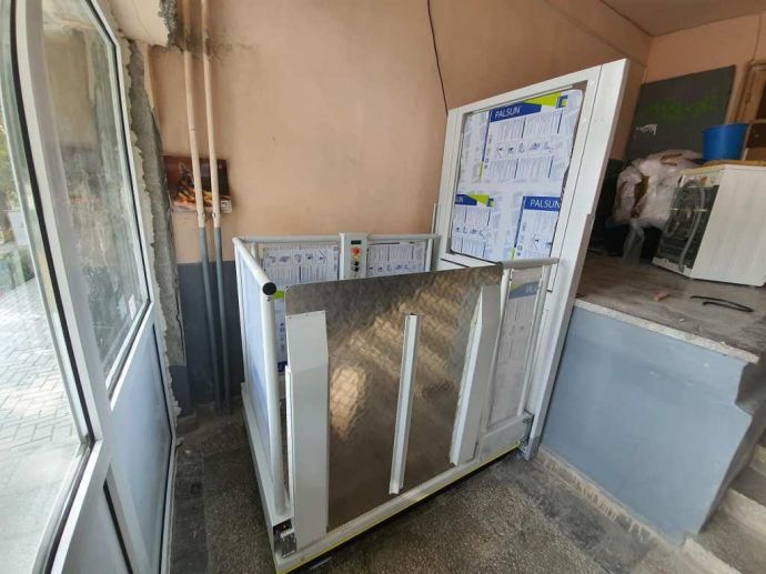 Вече са монтирани платформени подемници за преодоляване на стълбището до асансьорите.![]()