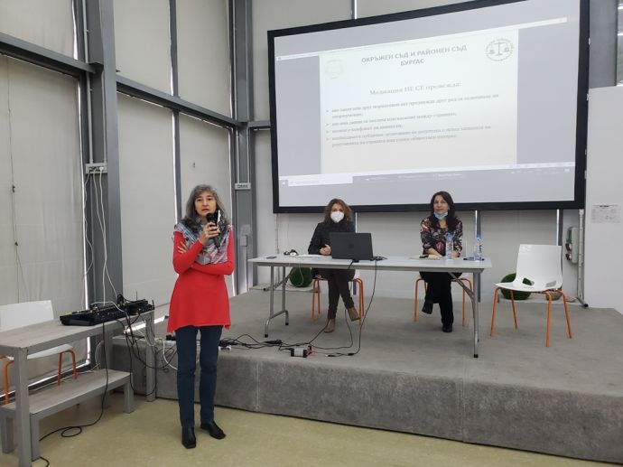 Районен съдия и двама медиатори от Центъра за медиация и спогодби към бургаските Окръжен и Районен съд участваха в информационна среща със законно пребиваващи мигранти, граждани на трети страни в Бургас. Форумът бе организиран от Центъра за мигранти на Международната организация по миграция, със седалище в морския град. Съдия Дарина Йорданова, медиаторите Пешка Чернокожева и Елена Ставрева изнесоха презентация на тема "Медиацията - алтернативен способ за разрешаване на спорове". Идеята на срещата бе да се подпомогне социалната ориентация на мигрантите и те да се запознаят с институции и организации предоставящи услуги в различни сфери.