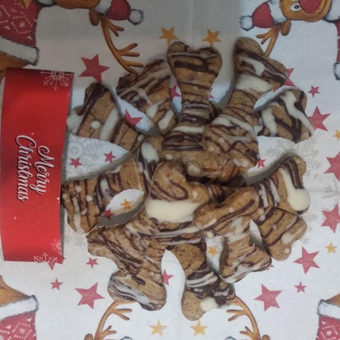„100 грама от тези ухания, приготвени в малка златиста коледна кутийка ще ви струват 7лв, но ще получите безкрайна усмивка от вашето космато приятелче. Печем бисквитки и с говеждо, мента за свеж дъх, ябълка за здрав стомах, морковче за сила и тиква за нежен вкус ,ванилия за аромат по желание, броколи за здраве, спанак за енергия, извара за добър растеж и оризово брашънце за алергичните приятели. А ако искате да изненадате вашето дете с топка на елхата, то 50гр ще ви коства 6лв за Коледната нощ! Поръчките се изпълняват в 3дневен срок и се изпращат със Спиди куриер. А за Бургас може и лично предаване! Ще зарадвате ли своя домашен любимец и ще усмихнете ли наше бездомниче - решавате Вие!