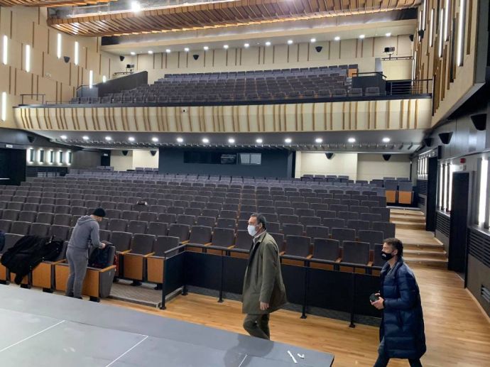 Зрителна зала също е изцяло обновена - с нови седалки, а днес монтираха и екран за кинопрожекции. Сцената е със специален механизъм, който позволява тя да се върти, за да се сменят декорите на представленията, вече има и оркестрина. В нов касов салон ще се предлагат билети за различни концерти, кина и театри.