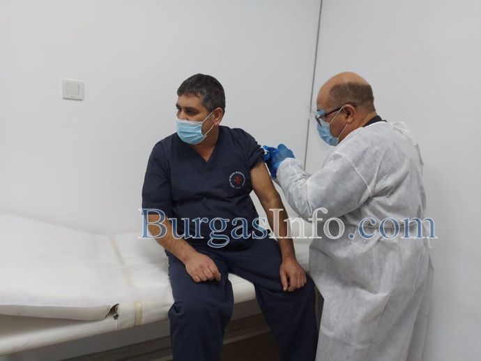 25 медици от Бърза помощ в Бургас и филиалите Средец, Приморско и Руен са първите, които се ваксинират днес в РЗИ. Общо изявилите желание за имунизация са около 80 души. Сред ваксинираните днес са и д-р Величка Григорова от РЗИ и директорът на Бърза помощ д-р Асен Кърджиев.