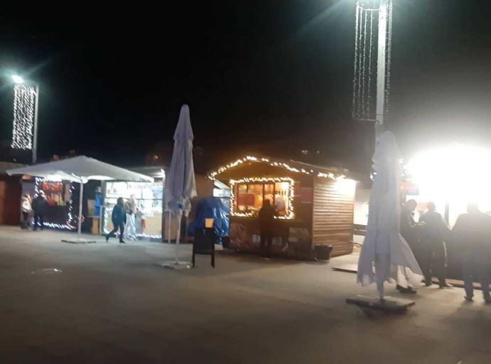 Новогидшните къщички на „Тройката“ са заредение с празнично настроение, там обаче консумацията на място не е разрешена.